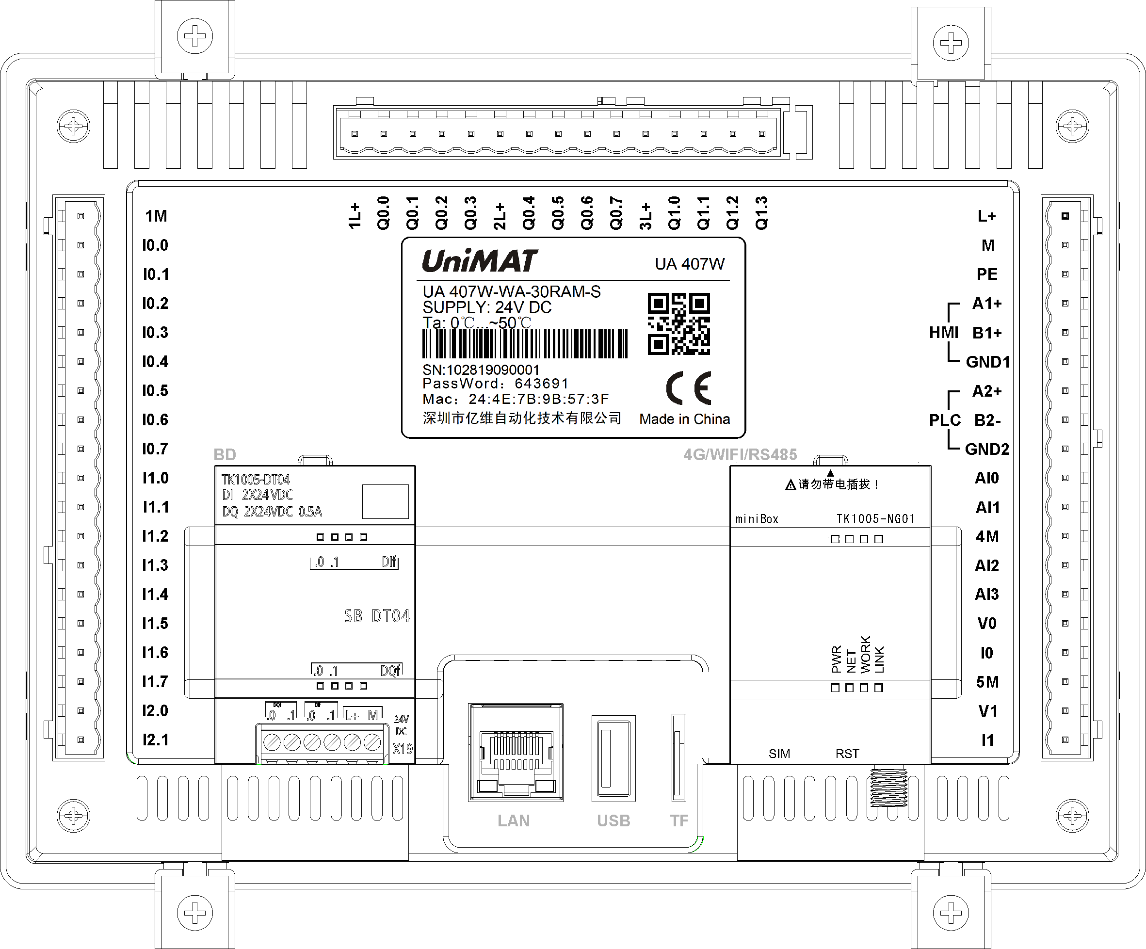 扩展端口:可选485 SB卡*1(port1)支持PPI自由口及Modbus RTU |
